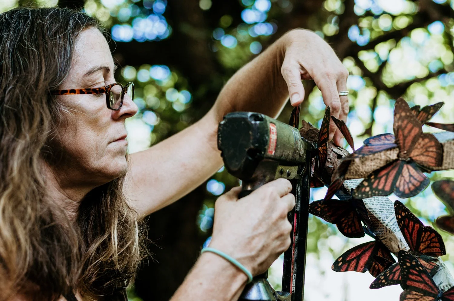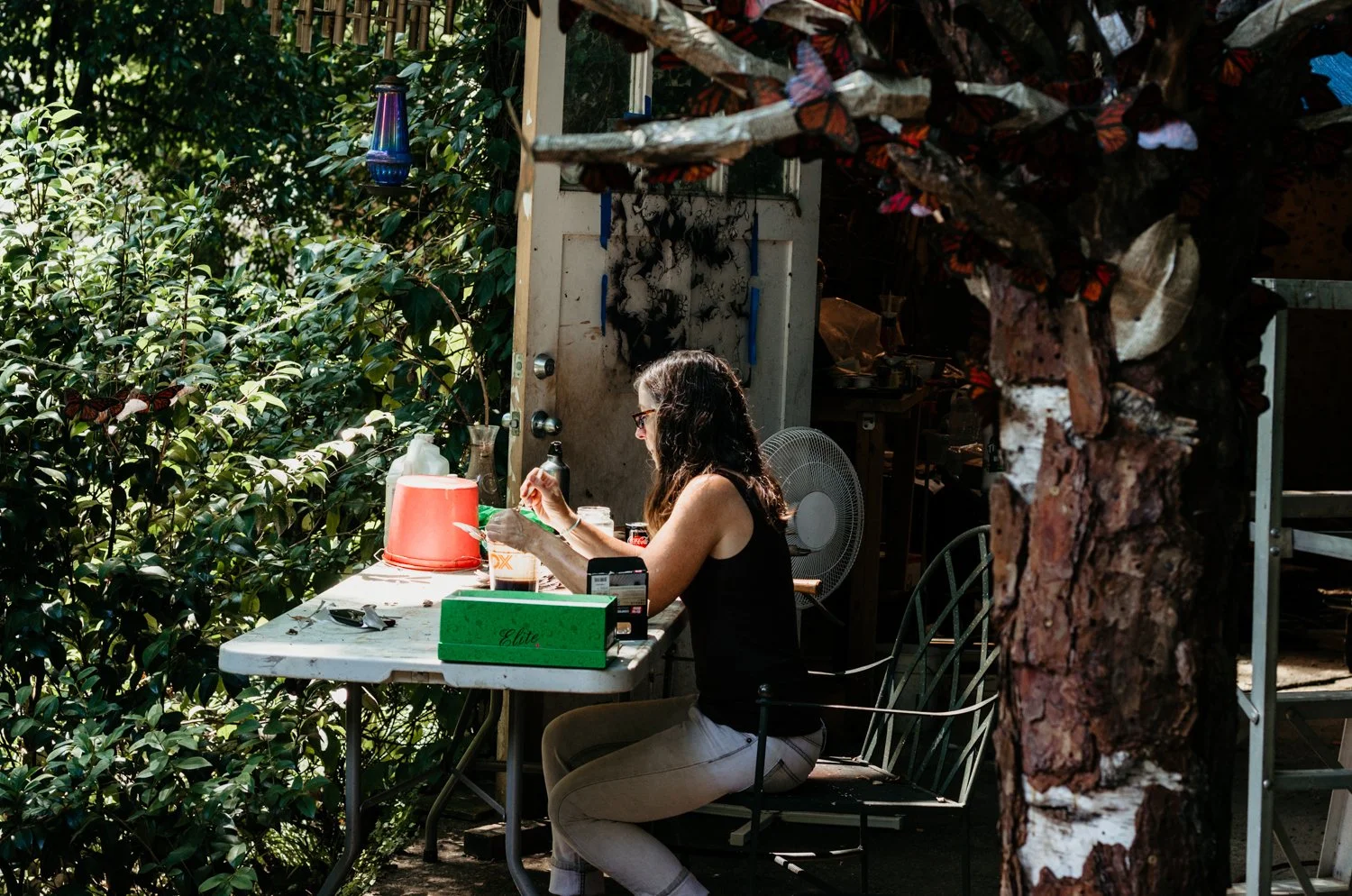 Dorothy O'Conno: 00:07:11 I don't know if you're interested. It's not this Friday, but next Friday. She does ceramics and weaving and drawing. She's going to make beehives to go in the trunk. Then, we're both making just a shit load of bees that will go on the tree around the hives once I finish the shucking.